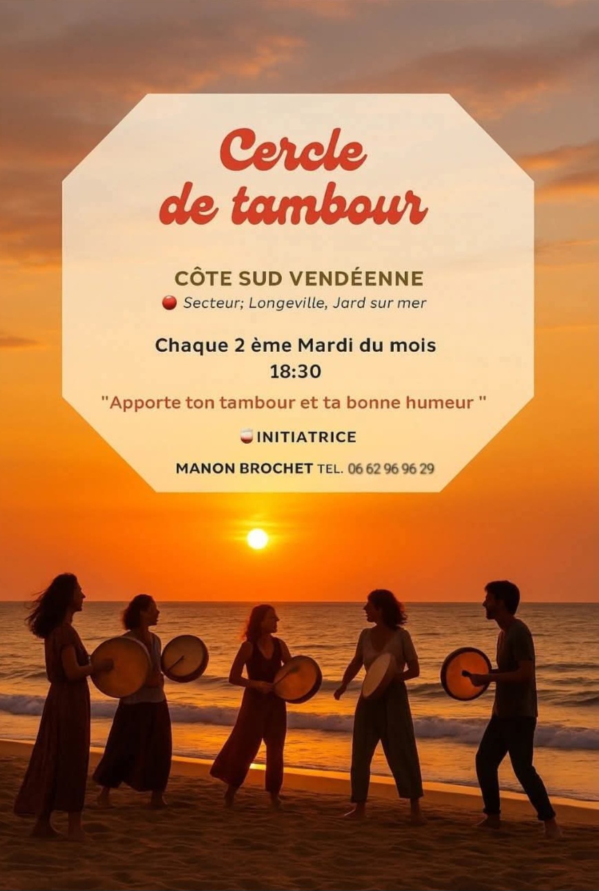 Les cercles de tambour sont des espaces de rencontre et de retour à soi, en lien avec les éléments : la terre, la mer, le souffle et le feu intérieur.
